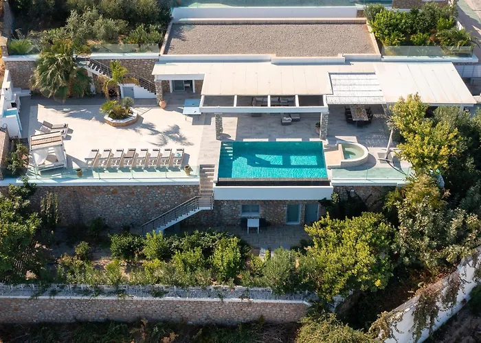Deze 5-slaapkamer Modern Luxury Villa Vlicha ligt op 3 km van Akropolis van Lindos en heeft een zwembad, een bubbelbad om in te ontspannen. De 5-badkamer villa biedt toegang tot een terras en nodigt gasten uit om Lindos te bezoeken, die binnen 10 minuten rijden ligt.